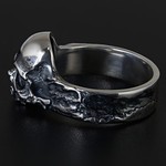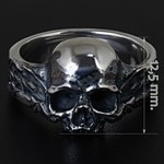 Серебряное мужское кольцо с черепом без рогов. Поверхность зачерненная и отполированная. Размер лицевой части: 12.5 мм. Средний вес изделия 8.77 гр. Все изделия собственного производства, гарантия 12 месяцев. Арт. 8099 Знак черепа широко распространен во многих культурах, чаще всего он является символом бессмертия и пути спасения. У кельтов это был знаком защищающим от злых сил, дарующий здоровье и успех. Символом защиты от смерти является для тех чей образ жизни связан с риском. В Русской Императорской армии символика черепа впервые использовалась в Отечественной войне 1812 года. Конный полк Петербургского ополчения назывался «Смертоносным» или «Бессмертным» полком. У чинов этой части головные уборы были украшены серебряными черепами.
