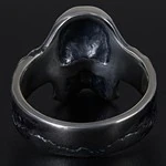 Серебряное мужское кольцо с черепом без рогов. Поверхность зачерненная и отполированная. Размер лицевой части: 17.5 мм. Средний вес изделия 9.91 гр. Все изделия собственного производства, гарантия 12 месяцев. Арт. 8100 Знак черепа широко распространен во многих культурах, чаще всего он является символом бессмертия и пути спасения. У кельтов это был знаком защищающим от злых сил, дарующий здоровье и успех. Символом защиты от смерти является для тех чей образ жизни связан с риском. В Русской Императорской армии символика черепа впервые использовалась в Отечественной войне 1812 года. Конный полк Петербургского ополчения назывался «Смертоносным» или «Бессмертным» полком. У чинов этой части головные уборы были украшены серебряными черепами.
