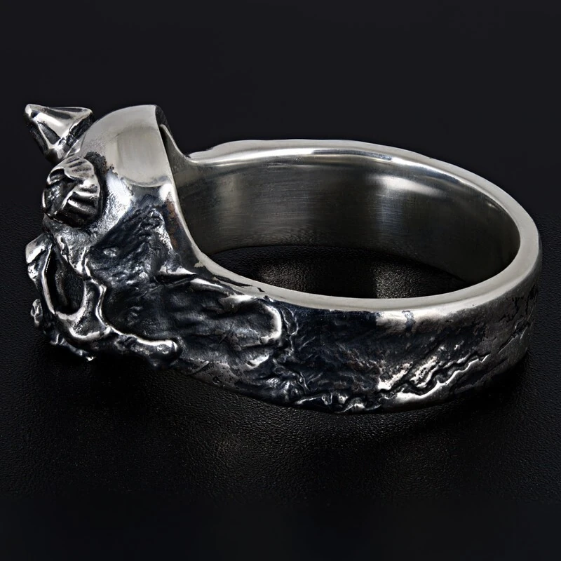 Серебряное мужское кольцо с черепом с рогами. Поверхность зачерненная и отполированная. Размер лицевой части: 12.5 мм. Средний вес изделия 9.08 гр. Все изделия собственного производства, гарантия 12 месяцев. Арт. 8103 Знак черепа широко распространен во многих культурах, чаще всего он является символом бессмертия и пути спасения. У кельтов это был знаком защищающим от злых сил, дарующий здоровье и успех. Символом защиты от смерти является для тех чей образ жизни связан с риском. В Русской Императорской армии символика черепа впервые использовалась в Отечественной войне 1812 года. Конный полк Петербургского ополчения назывался «Смертоносным» или «Бессмертным» полком. У чинов этой части головные уборы были украшены серебряными черепами.