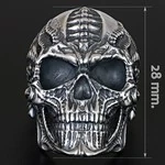 Серебряный мужской перстень с черепом - Биомеханик. Поверхность зачерненная и отполированная. Размер лицевой части: 28 мм. Средний вес изделия 18.18 гр. Все изделия собственного производства, гарантия 12 месяцев. Арт. 8109 Знак черепа широко распространен во многих культурах, чаще всего он является символом бессмертия и пути спасения. У кельтов это был знаком защищающим от злых сил, дарующий здоровье и успех. Символом защиты от смерти является для тех чей образ жизни связан с риском. В Русской Императорской армии символика черепа впервые использовалась в Отечественной войне 1812 года. Конный полк Петербургского ополчения назывался «Смертоносным» или «Бессмертным» полком. У чинов этой части головные уборы были украшены серебряными черепами.