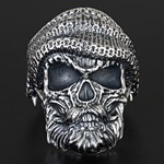 Серебряный мужской перстень с черепом - Старший Боцман. Поверхность зачерненная и отполированная. Размер лицевой части: 26 мм. Средний вес изделия 14.11 гр. Все изделия собственного производства. Арт. 8110 Знак черепа широко распространен во многих культурах, чаще всего он является символом бессмертия и пути спасения. У кельтов это был знаком защищающим от злых сил, дарующий здоровье и успех. Символом защиты от смерти является для тех чей образ жизни связан с риском. В Русской Императорской армии символика черепа впервые использовалась в Отечественной войне 1812 года. Конный полк Петербургского ополчения назывался «Смертоносным» или «Бессмертным» полком. У чинов этой части головные уборы были украшены серебряными черепами.