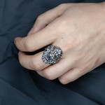 Серебряное мужское кольцо - Лев. Поверхность зачерненная и отполированная. Размер лицевой части: 28 мм. Средний вес изделия 14.73 гр. Все изделия собственного производства, гарантия 12 месяцев. Арт. 8113