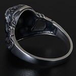 Серебряное мужское кольцо с черепом - Астронавт. Поверхность зачерненная и отполированная. Размер лицевой части: 15 мм. Средний вес изделия 5.07 гр. Все изделия собственного производства. Арт. 8114 Знак черепа широко распространен во многих культурах, чаще всего он является символом бессмертия и пути спасения. У кельтов это был знаком защищающим от злых сил, дарующий здоровье и успех. Символом защиты от смерти является для тех чей образ жизни связан с риском. В Русской Императорской армии символика черепа впервые использовалась в Отечественной войне 1812 года. Конный полк Петербургского ополчения назывался «Смертоносным» или «Бессмертным» полком. У чинов этой части головные уборы были украшены серебряными черепами.