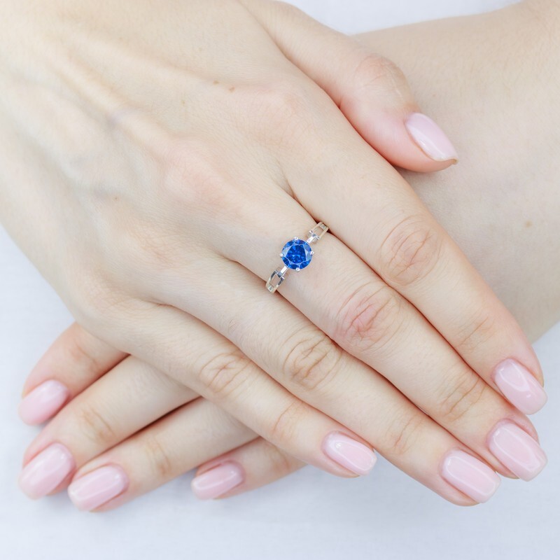 Серебряное кольцо с нанокристаллом, цвет синий сапфир - коллекция Классик. Средний вес изделия с камнями 2.11 гр. Размер главного камня: круг 7 мм. Нанокристалл - синтезированный ювелирный нанокристалл, превосходящий по блеску, преломлению света, твердости, плотности простой фианит. Все изделия собственного производства, гарантия 12 месяцев. Арт. 8250