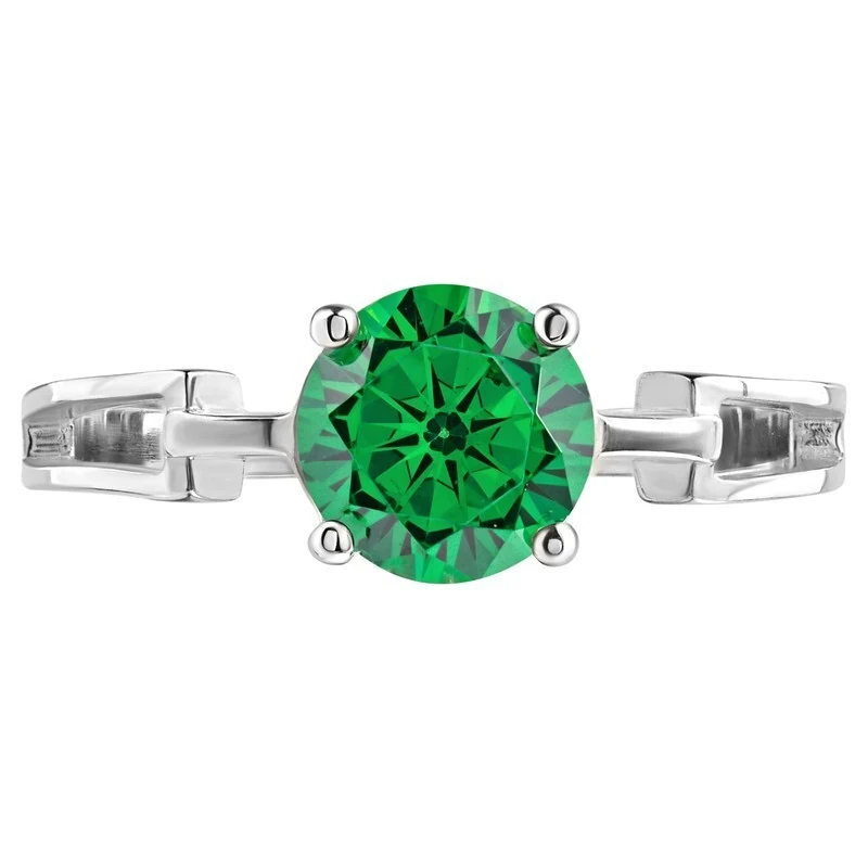 Серебряное кольцо с нанокристаллом, цвет зеленый изумруд - коллекция Классик. Средний вес изделия с камнями 2.11 гр. Размер главного камня: круг 7 мм. Нанокристалл - синтезированный ювелирный нанокристалл, превосходящий по блеску, преломлению света, твердости, плотности простой фианит. Все изделия собственного производства, гарантия 12 месяцев. Арт. 8251