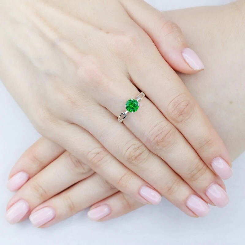 Серебряное кольцо с нанокристаллом, цвет зеленый изумруд - коллекция Классик. Средний вес изделия с камнями 2.11 гр. Размер главного камня: круг 7 мм. Нанокристалл - синтезированный ювелирный нанокристалл, превосходящий по блеску, преломлению света, твердости, плотности простой фианит. Все изделия собственного производства, гарантия 12 месяцев. Арт. 8251