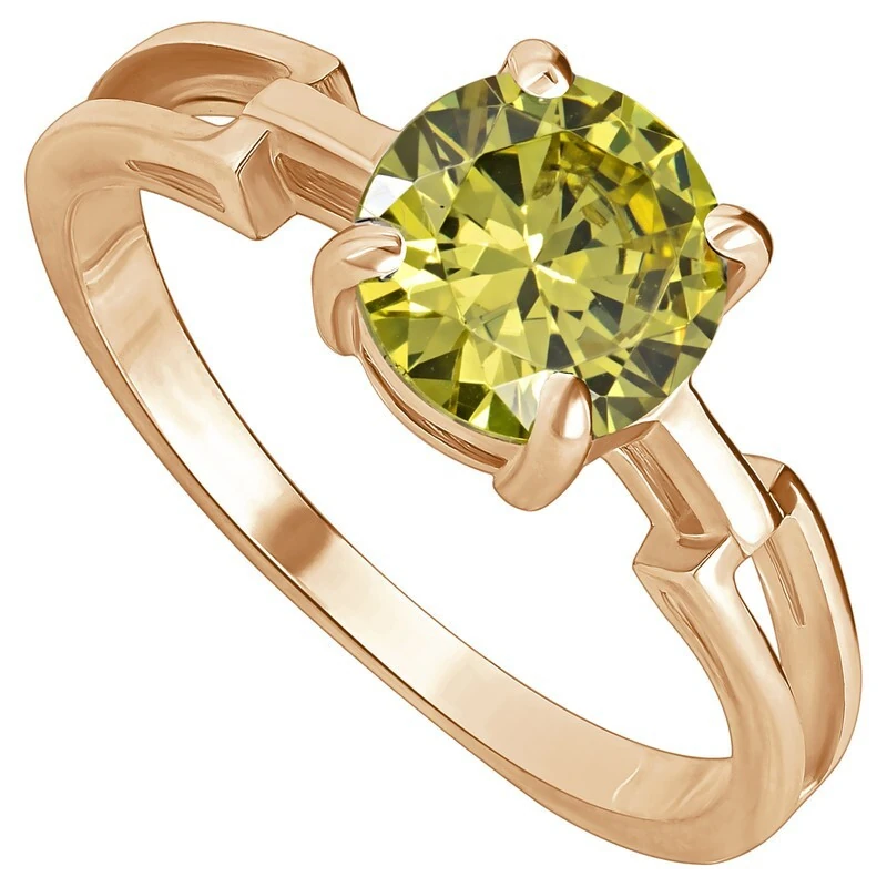 Серебряное кольцо с нанокристаллом, цвет желтый - коллекция Классик. Серебряное кольцо 925 пробы с покрытием розовое золото. Цвет покрытия соответствует швейцарскому цветовому стандарту NIHS -4N и цвету розового золота 585 в России. На последней фотографии мы разместили сравнительную фотографию 3 цвета золотого покрытия. Помимо предания золотого цвета Вашему изделию, тонкий слой золота защищает от окисления. Для более стойкого эффекта золочения и долговечности покрытия мы дополнительно наносим подслой палладия (Pd). Средний вес изделия с камнями 2.11 гр. Размер главного камня: круг 7 мм. Нанокристалл - синтезированный ювелирный нанокристалл, превосходящий по блеску, преломлению света, твердости, плотности простой фианит. Все изделия собственного производства, гарантия 12 месяцев. Арт. 8255