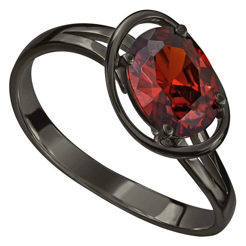 Серебряное кольцо с нанокристаллом, цвет красный - коллекция Фрейя, покрытие Черный Родий.