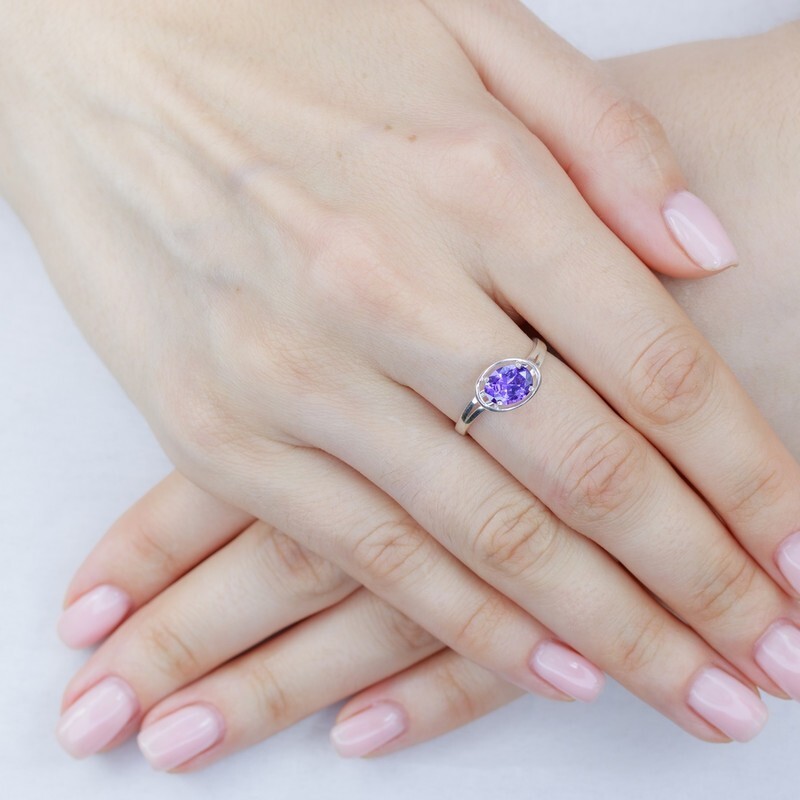 Серебряное кольцо с нанокристаллом, цвет фиолетовый - коллекция Фрейя. Средний вес изделия с камнями 2.13 гр. Размер главного камня: овал 6*8 мм. Нанокристалл - синтезированный ювелирный нанокристалл, превосходящий по блеску, преломлению света, твердости, плотности простой фианит. Все изделия собственного производства, гарантия 12 месяцев. Арт. 8286.