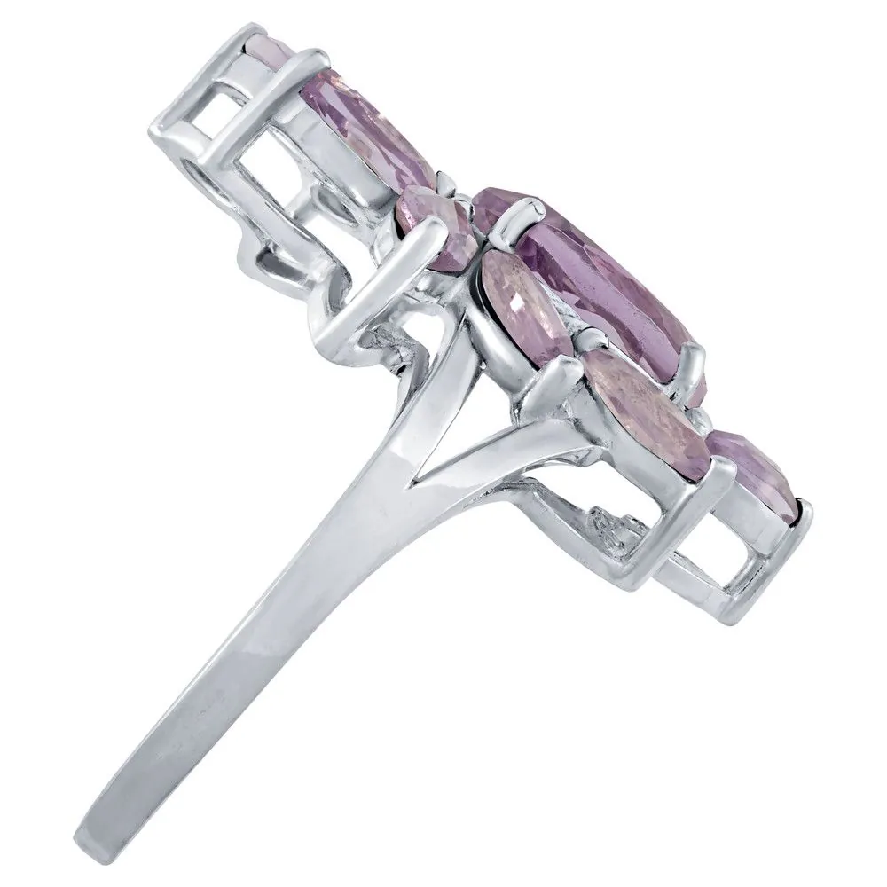 Серебряное кольцо "Элегия" с натуральным аметистом, покрытие Чистое Серебро. Средний вес украшения с камнями 3,43 гр. Месторождение(я) камней: Аметист (Приполярный Урал, Россия). Аметист (Натуральный) груша: 7*10 мм., средний вес: 1,77 карат. Аметист (Натуральный) маркиз: 3*6 мм., средний вес: 0,22 карат. Размер лицевой части: 15*23 мм. Все изделия собственного производства и имеют гарантию 12 месяцев. Арт. 6609AG. Аметист — прозрачный или полупрозрачный камень фиолетовых оттенков, подвид кварца. Он гармонизирует разум, снимает стресс, улучшает кровообращение, способствует умственному развитию и личностному росту. Считается, что он также оберегает от головной боли и бессонницы, служит противоядием, помогает избавиться от алкоголизма и наделяет владельца проницательностью, раскрывая «третий глаз» (за который отвечает чакра аджна). В медитации помогает расслабиться и успокоиться. Положенный под подушку, аметист приносит хорошие сны.