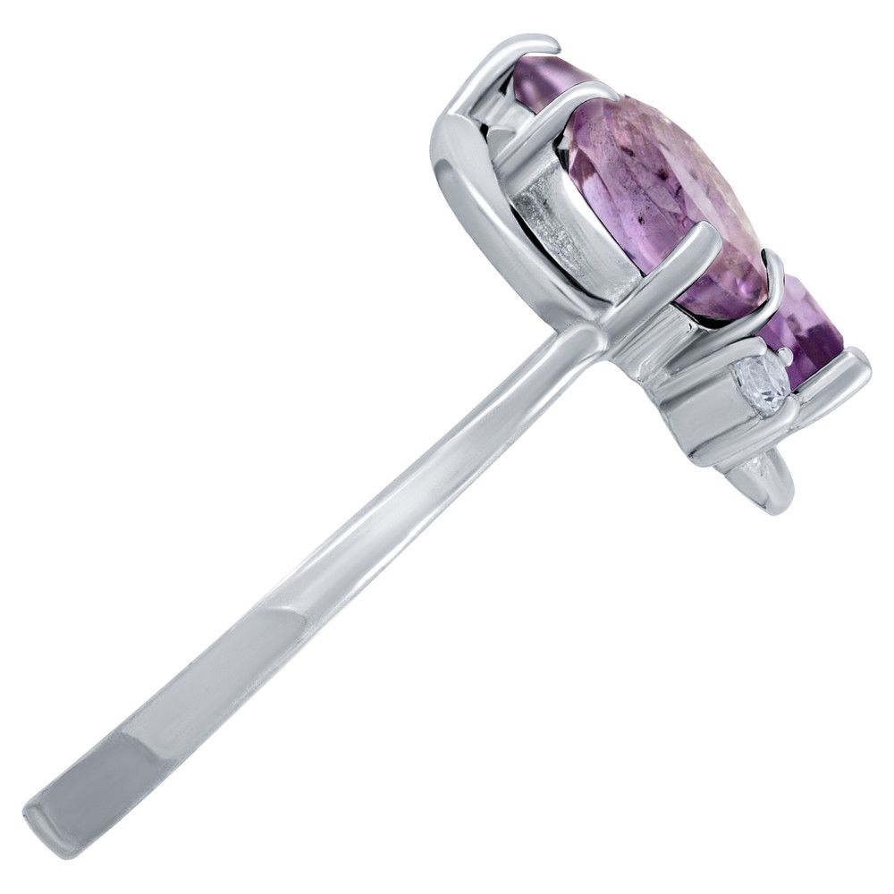 Серебряное кольцо "Фортуна" с натуральным аметистом, покрытие Белый Родий. Средний вес украшения с камнями 3,16 гр. Месторождение(я) камней: Аметист (Приполярный Урал, Россия). Аметист (Натуральный) маркиз: 4*8 мм., средний вес 0,50 карат. Аметист (Натуральный) овал: 5*7 мм., средний вес 0,80 карат. Аметист (Натуральный) груша: 5*7 мм., средний вес 0,70 карат. Циркон белый (Натуральный) круг: 2 мм., средний вес 0,05 карат. Размер лицевой части: 13*15 мм. Все изделия собственного производства и имеют гарантию 12 месяцев. Арт. 6613WR