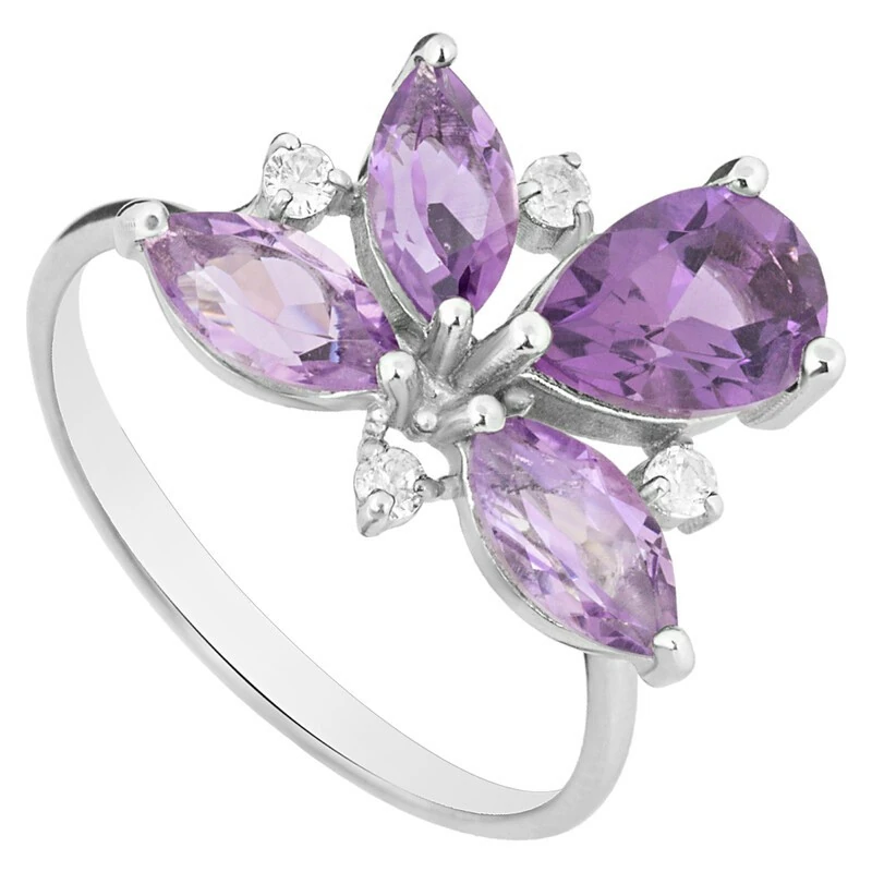 Серебряное кольцо "Аврора" с натуральным аметистом, покрытие Чистое Серебро. Средний вес украшения с камнями 3,48 гр. Месторождение(я) камней: Аметист (Приполярный Урал, Россия). Аметист (Натуральный) маркиз: 4*8 мм., средний вес 0,50 карат.