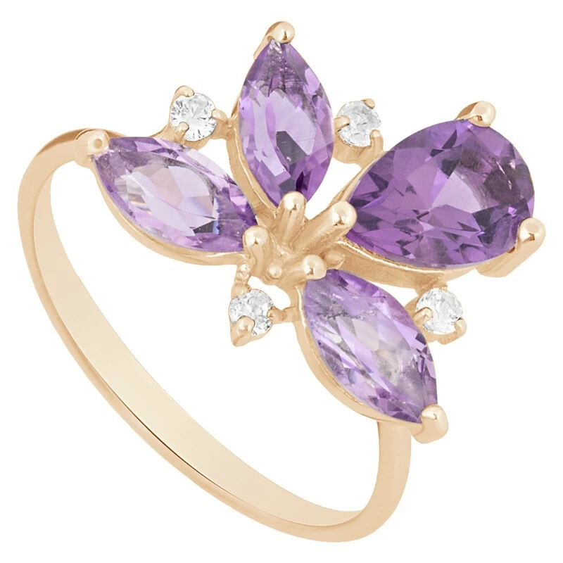 Серебряное кольцо "Аврора" с натуральным аметистом, покрытие Розовое Золото. Средний вес украшения с камнями 3,48 гр. Месторождение(я) камней: Аметист (Приполярный Урал, Россия). Аметист (Натуральный) маркиз: 4*8 мм., средний вес 0,50 карат.
