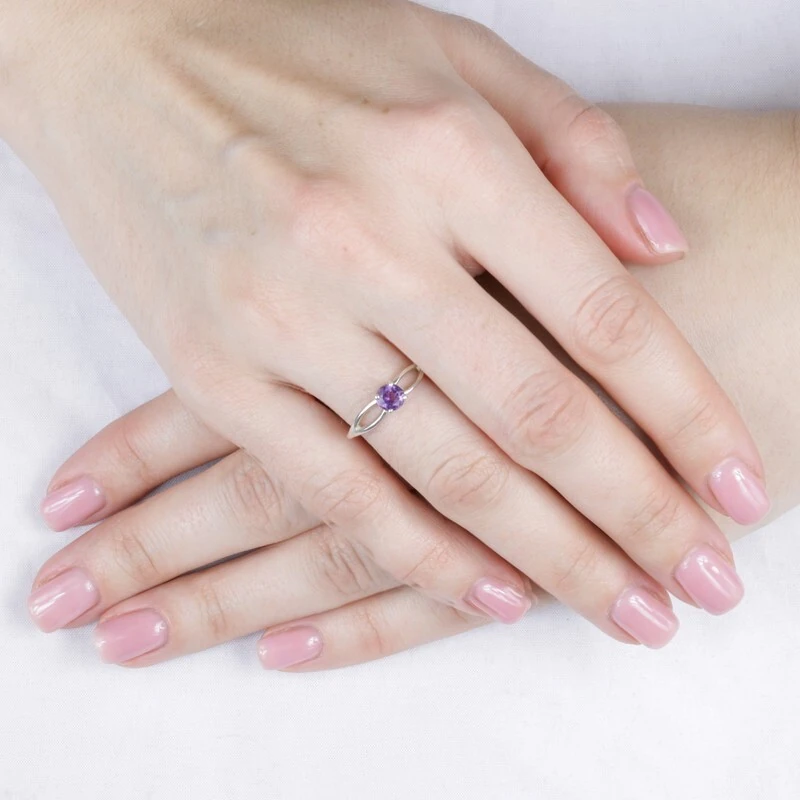 Серебряное кольцо с натуральным аметистом - коллекция Мона. Средний вес изделия с камнем составляет 1.48 гр. Месторождение(я): Аметист (Приполярный Урал, Россия). Аметист (Натуральный) круг 5 мм., средний вес: 0.49 карат. Все изделия собственного производства, гарантия 12 месяцев. Арт. 7704. Аметист — прозрачный или полупрозрачный камень фиолетовых оттенков, подвид кварца. Он гармонизирует разум, снимает стресс, улучшает кровообращение, способствует умственному развитию и личностному росту. Считается, что он также оберегает от головной боли и бессонницы, служит противоядием, помогает избавиться от алкоголизма и наделяет владельца проницательностью, раскрывая «третий глаз» (за который отвечает чакра аджна). В медитации помогает расслабиться и успокоиться. Положенный под подушку, аметист приносит хорошие сны.