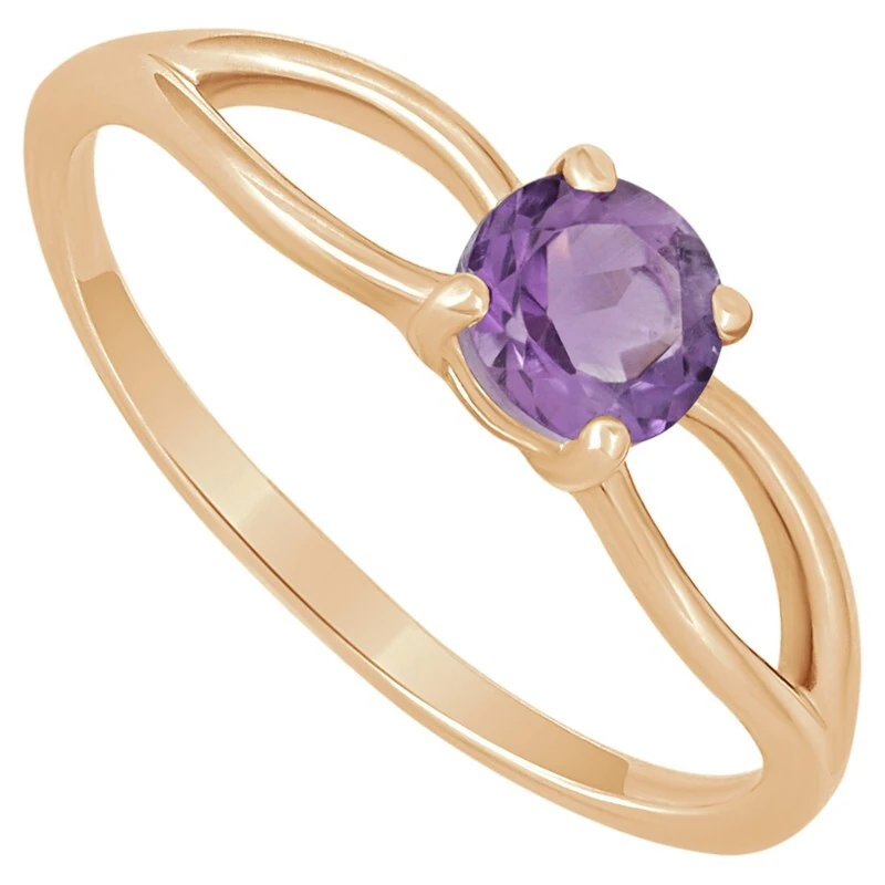Серебряное кольцо с натуральным аметистом - коллекция Мона. Серебряное кольцо 925 пробы с покрытием розовое золото. Цвет покрытия соответствует швейцарскому цветовому стандарту NIHS -4N и цвету розового золота 585 в России. На последней фотографии мы разместили сравнительную фотографию 3 цвета золотого покрытия. Помимо предания золотого цвета Вашему изделию, тонкий слой золота защищает от окисления. Для более стойкого эффекта золочения и долговечности покрытия мы дополнительно наносим подслой палладия (Pd). Средний вес изделия с камнем составляет 1.48 гр. Месторождение(я): Аметист (Приполярный Урал, Россия). Аметист (Натуральный) круг 5 мм., средний вес: 0.49 карат. Все изделия собственного производства, гарантия 12 месяцев. Арт. 7704. Аметист — прозрачный или полупрозрачный камень фиолетовых оттенков, подвид кварца. Он гармонизирует разум, снимает стресс, улучшает кровообращение, способствует умственному развитию и личностному росту. Считается, что он также оберегает от головной боли и бессонницы, служит противоядием, помогает избавиться от алкоголизма и наделяет владельца проницательностью, раскрывая «третий глаз» (за который отвечает чакра аджна). В медитации помогает расслабиться и успокоиться. Положенный под подушку, аметист приносит хорошие сны.