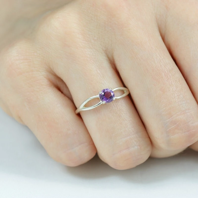 Серебряное кольцо с натуральным аметистом - коллекция Мона. Средний вес изделия с камнем составляет 1.48 гр. Месторождение(я): Аметист (Приполярный Урал, Россия). Аметист (Натуральный) круг 5 мм., средний вес: 0.49 карат. Все изделия собственного производства, гарантия 12 месяцев. Арт. 7704. Аметист — прозрачный или полупрозрачный камень фиолетовых оттенков, подвид кварца. Он гармонизирует разум, снимает стресс, улучшает кровообращение, способствует умственному развитию и личностному росту. Считается, что он также оберегает от головной боли и бессонницы, служит противоядием, помогает избавиться от алкоголизма и наделяет владельца проницательностью, раскрывая «третий глаз» (за который отвечает чакра аджна). В медитации помогает расслабиться и успокоиться. Положенный под подушку, аметист приносит хорошие сны.