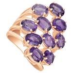 Серебряное кольцо с натуральным аметистом - коллекция Аэлита. Серебряное кольцо 925 пробы с покрытием красное золото. Цвет покрытия соответствует швейцарскому цветовому стандарту NIHS -5N и цвету красного золота 585 в России. На последней фотографии мы разместили сравнительную фотографию 3 цвета золотого покрытия. Помимо предания золотого цвета Вашему изделию, тонкий слой золота защищает от окисления. Для более стойкого эффекта золочения и долговечности покрытия мы дополнительно наносим подслой палладия (Pd). Средний вес изделия с камнями 9.56 гр. Месторождение: Аметист (Приполярный Урал, Россия). Аметист (Натуральный) овал 5*7 мм., средний вес: 0.81 карат. Все изделия собственного производства, гарантия 12 месяцев. Арт. 7835. Аметист — прозрачный или полупрозрачный камень фиолетовых оттенков, подвид кварца. Он гармонизирует разум, снимает стресс, улучшает кровообращение, способствует умственному развитию и личностному росту. Считается, что он также оберегает от головной боли и бессонницы, служит противоядием, помогает избавиться от алкоголизма и наделяет владельца проницательностью, раскрывая «третий глаз» (за который отвечает чакра аджна). В медитации помогает расслабиться и успокоиться. Положенный под подушку, аметист приносит хорошие сны.