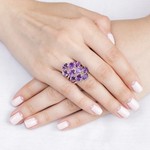 Серебряное кольцо с натуральным аметистом - коллекция Аэлита. Средний вес изделия с камнями 9.56 гр. Месторождение: Аметист (Приполярный Урал, Россия). Аметист (Натуральный) овал 5*7 мм., средний вес: 0.81 карат. Все изделия собственного производства, гарантия 12 месяцев. Арт. 7835. Аметист — прозрачный или полупрозрачный камень фиолетовых оттенков, подвид кварца. Он гармонизирует разум, снимает стресс, улучшает кровообращение, способствует умственному развитию и личностному росту. Считается, что он также оберегает от головной боли и бессонницы, служит противоядием, помогает избавиться от алкоголизма и наделяет владельца проницательностью, раскрывая «третий глаз» (за который отвечает чакра аджна). В медитации помогает расслабиться и успокоиться. Положенный под подушку, аметист приносит хорошие сны.