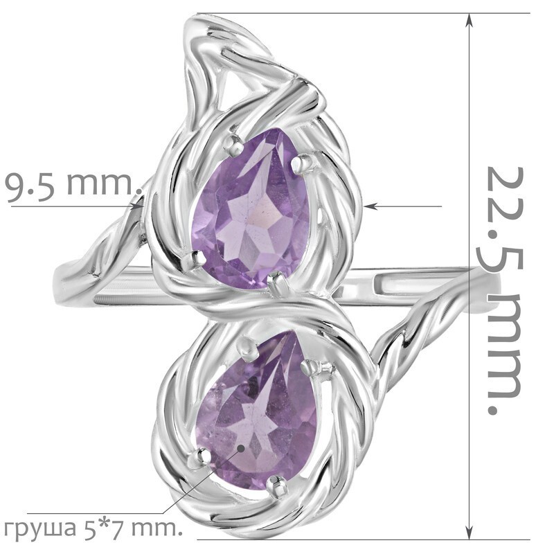 Средний вес изделия с камнями 2.88 гр. Месторождение(я): Аметист (Приполярный Урал, Россия). Аметист (Натуральный) груша 5*7 мм., средний вес: 0.68 карат. Размер лицевой части: 11*23 мм. Все изделия собственного производства, гарантия 12 месяцев. Арт. 7879