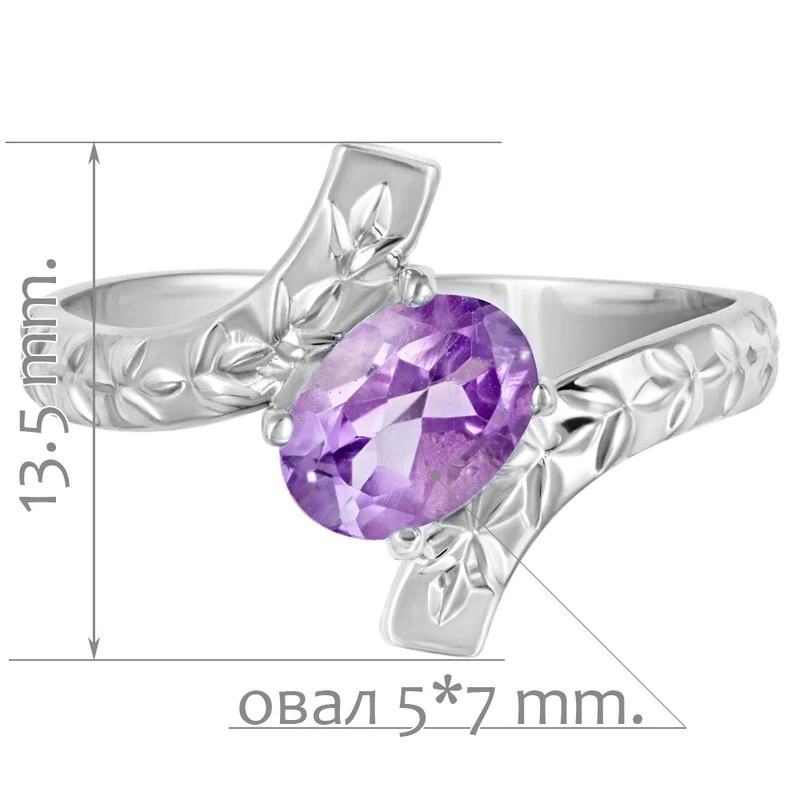 Серебряное кольцо с натуральным аметистом - коллекция Тея. Средний вес изделия с камнями 2.41 гр. Месторождение: Аметист (Приполярный Урал, Россия) Аметист (Натуральный) овал 5*7 мм., средний вес: 0.83 карат. Все изделия собственного производства, гарантия 12 месяцев. Арт. 8098