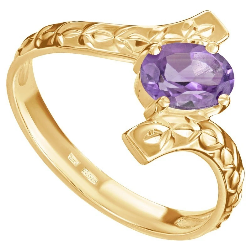 Серебряное кольцо с натуральным аметистом - коллекция Тея. Серебряное кольцо 925 пробы с покрытием желтое золото. Цвет покрытия соответствует швейцарскому цветовому стандарту NIHS -FF24ct и цвету чистого золото 999.99. На последней фотографии мы разместили сравнительную фотографию 3 цвета золотого покрытия. Помимо предания золотого цвета Вашему изделию, тонкий слой золота защищает от окисления. Для более стойкого эффекта золочения и долговечности покрытия мы дополнительно наносим подслой палладия (Pd). Средний вес изделия с камнями 2.41 гр. Месторождение: Аметист (Приполярный Урал, Россия) Аметист (Натуральный) овал 5*7 мм., средний вес: 0.83 карат. Все изделия собственного производства, гарантия 12 месяцев. Арт. 8098