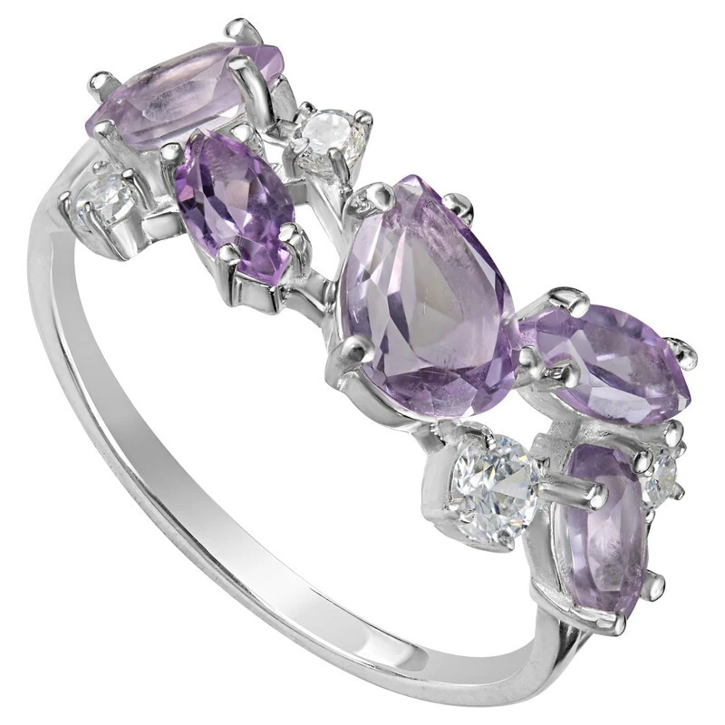 Серебряное кольцо с натуральным аметистом - коллекция Росинка. Средний вес изделия с камнями 2.49 гр. Месторождение: Аметист (Приполярный Урал, Россия). Аметист (Натуральный) груша 5*7 мм., средний вес: 0.65 карат. Все изделия собственного производства, гарантия 12 месяцев. Арт. 8429. Аметист — прозрачный или полупрозрачный камень фиолетовых оттенков, подвид кварца. Он гармонизирует разум, снимает стресс, улучшает кровообращение, способствует умственному развитию и личностному росту. Считается, что он также оберегает от головной боли и бессонницы, служит противоядием, помогает избавиться от алкоголизма и наделяет владельца проницательностью, раскрывая «третий глаз» (за который отвечает чакра аджна). В медитации помогает расслабиться и успокоиться. Положенный под подушку, аметист приносит хорошие сны.