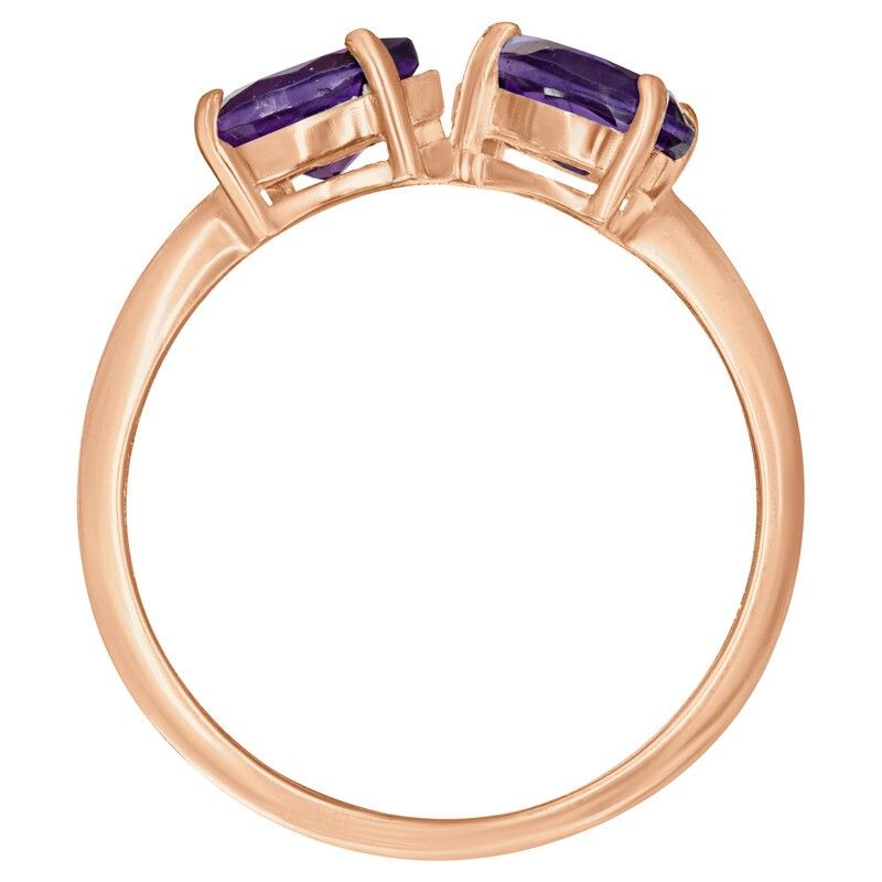 Серебряное кольцо с натуральным аметистом (темный) - коллекция Дуэт / покрытие Красное Золото.Средний вес украшения с камнями 1.42 гр.Месторождение(я): Аметист (Приполярный Урал, Россия).Ювелирные вставки:Аметист (Натуральный) груша 5*7 мм., средний вес: 0.65 карат.Все изделия собственного производства и имеют гарантию 12 месяцев. Арт. 8621RG. Аметист — прозрачный или полупрозрачный камень фиолетовых оттенков, подвид кварца. Он гармонизирует разум, снимает стресс, улучшает кровообращение, способствует умственному развитию и личностному росту. Считается, что он также оберегает от головной боли и бессонницы, служит противоядием, помогает избавиться от алкоголизма и наделяет владельца проницательностью, раскрывая «третий глаз» (за который отвечает чакра аджна). В медитации помогает расслабиться и успокоиться. Положенный под подушку, аметист приносит хорошие сны.