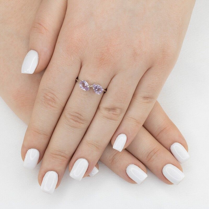 Серебряное кольцо с натуральным аметистом (светлый) - коллекция Дуэт / Без покрытия.Средний вес украшения с камнями 1.63 гр.Месторождение(я): Аметист (Приполярный Урал, Россия).Ювелирные вставки:Аметист (Натуральный) груша 5*7 мм., средний вес: 0.65 карат.Все изделия собственного производства и имеют гарантию 12 месяцев. Арт. 8623NP. Аметист — прозрачный или полупрозрачный камень фиолетовых оттенков, подвид кварца. Он гармонизирует разум, снимает стресс, улучшает кровообращение, способствует умственному развитию и личностному росту. Считается, что он также оберегает от головной боли и бессонницы, служит противоядием, помогает избавиться от алкоголизма и наделяет владельца проницательностью, раскрывая «третий глаз» (за который отвечает чакра аджна). В медитации помогает расслабиться и успокоиться. Положенный под подушку, аметист приносит хорошие сны.