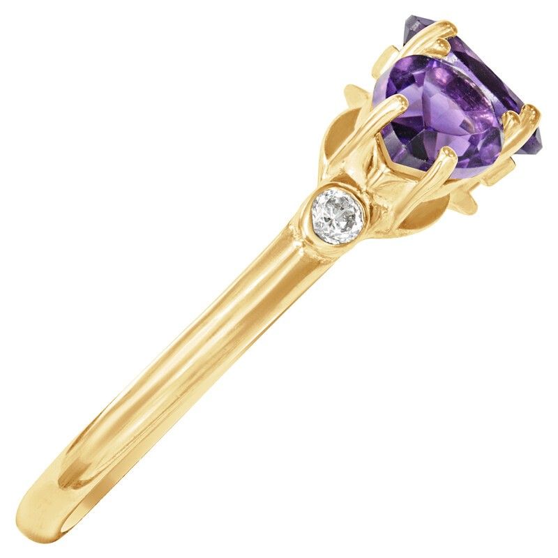 Серебряное кольцо с натуральным аметистом (темный) - коллекция Сансара / покрытие Желтое Золото.Средний вес украшения с камнями 2.31 гр.Месторождение(я): Аметист (Приполярный Урал, Россия).Ювелирные вставки:Аметист (Натуральный) овал 5*7 мм., средний вес: 0.72 карат.Аметист (Натуральный) груша 5*7 мм., средний вес: 0.65 карат.Белый Нанокристалл круг 2 мм., средний вес: 0.06 карат.Все изделия собственного производства и имеют гарантию 12 месяцев. Арт. 8638YG. Аметист — прозрачный или полупрозрачный камень фиолетовых оттенков, подвид кварца. Он гармонизирует разум, снимает стресс, улучшает кровообращение, способствует умственному развитию и личностному росту. Считается, что он также оберегает от головной боли и бессонницы, служит противоядием, помогает избавиться от алкоголизма и наделяет владельца проницательностью, раскрывая «третий глаз» (за который отвечает чакра аджна). В медитации помогает расслабиться и успокоиться. Положенный под подушку, аметист приносит хорошие сны.