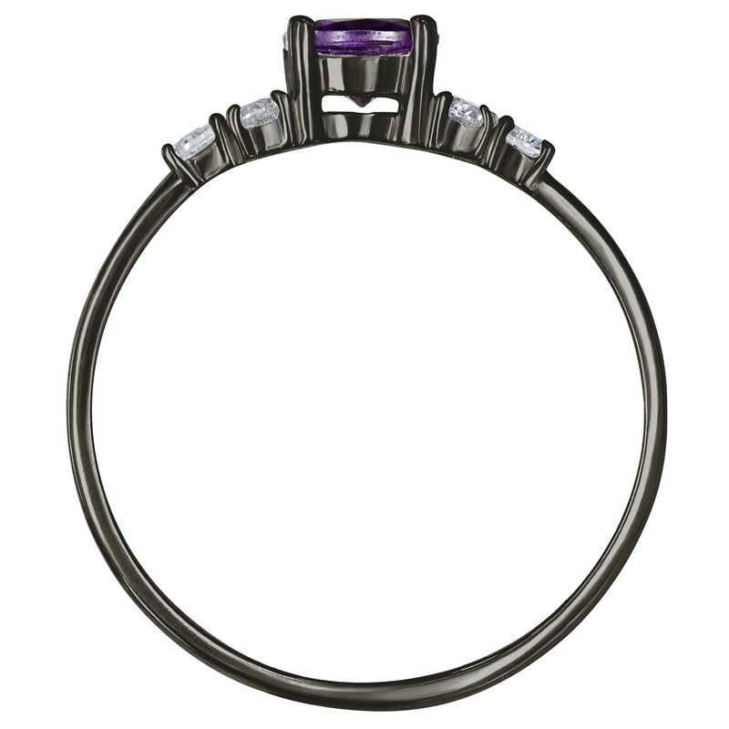 Серебряное кольцо с натуральным аметистом (темный) - коллекция Нова / покрытие Черный Родий.Средний вес украшения с камнями 1.3 гр.Месторождение(я): Аметист (Приполярный Урал, Россия).Ювелирные вставки:Аметист (Натуральный) круг 5 мм., средний вес: 0.48 карат.Белый Нанокристалл круг 2 мм., средний вес: 0.06 карат.Все изделия собственного производства и имеют гарантию 12 месяцев. Арт. 8653BR. Аметист — прозрачный или полупрозрачный камень фиолетовых оттенков, подвид кварца. Он гармонизирует разум, снимает стресс, улучшает кровообращение, способствует умственному развитию и личностному росту. Считается, что он также оберегает от головной боли и бессонницы, служит противоядием, помогает избавиться от алкоголизма и наделяет владельца проницательностью, раскрывая «третий глаз» (за который отвечает чакра аджна). В медитации помогает расслабиться и успокоиться. Положенный под подушку, аметист приносит хорошие сны.