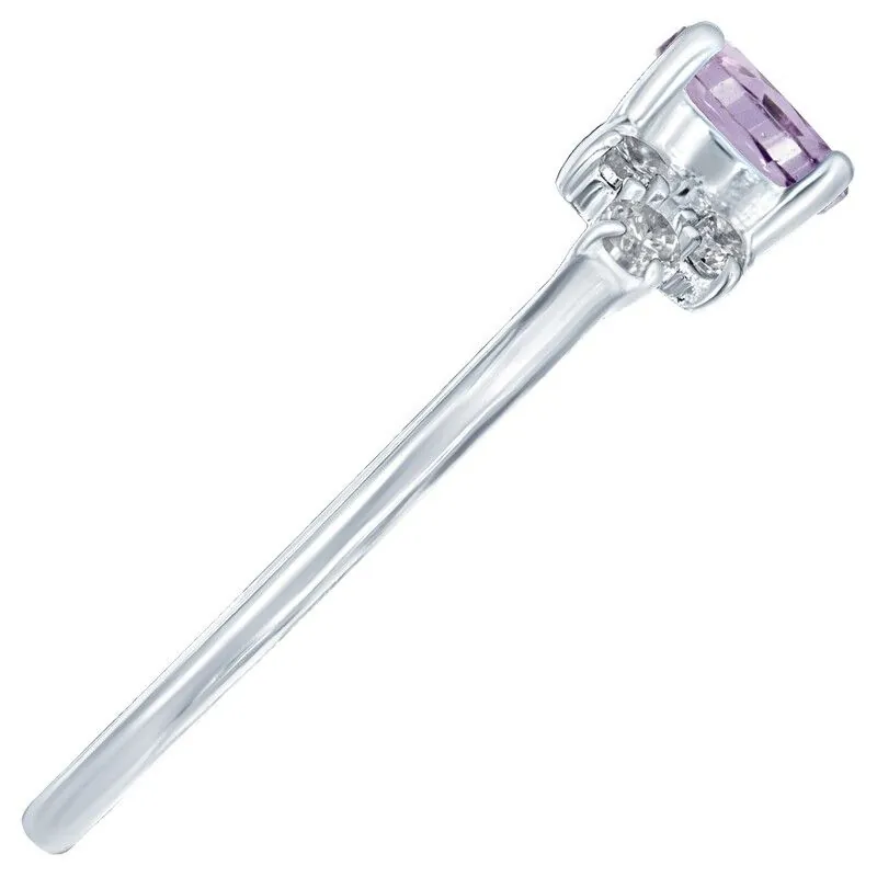 Серебряное кольцо с натуральным аметистом (светлый) - коллекция Нова / покрытие Чистое Серебро.Средний вес украшения с камнями 1.24 гр.Месторождение(я): Аметист (Приполярный Урал, Россия).Ювелирные вставки:Аметист (Натуральный) круг 5 мм., средний вес: 0.48 карат.Белый Нанокристалл круг 2 мм., средний вес: 0.06 карат.Все изделия собственного производства и имеют гарантию 12 месяцев. Арт. 8655AG. Аметист — прозрачный или полупрозрачный камень фиолетовых оттенков, подвид кварца. Он гармонизирует разум, снимает стресс, улучшает кровообращение, способствует умственному развитию и личностному росту. Считается, что он также оберегает от головной боли и бессонницы, служит противоядием, помогает избавиться от алкоголизма и наделяет владельца проницательностью, раскрывая «третий глаз» (за который отвечает чакра аджна). В медитации помогает расслабиться и успокоиться. Положенный под подушку, аметист приносит хорошие сны.