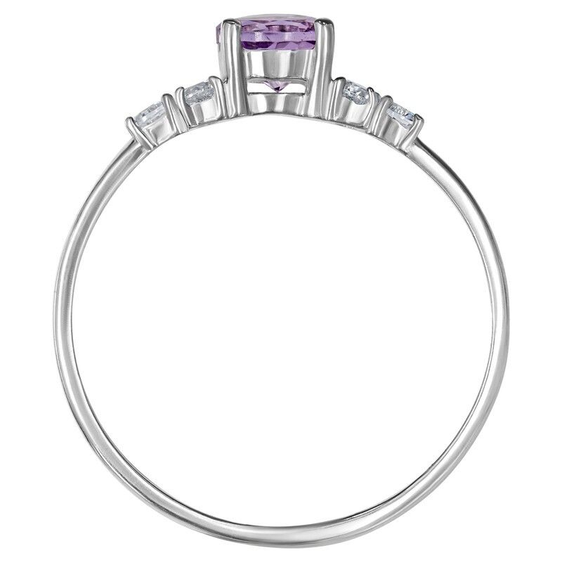 Серебряное кольцо с натуральным аметистом (светлый) - коллекция Нова / покрытие Белый Родий.Средний вес украшения с камнями 1.19 гр.Месторождение(я): Аметист (Приполярный Урал, Россия).Ювелирные вставки:Аметист (Натуральный) круг 5 мм., средний вес: 0.48 карат.Белый Нанокристалл круг 2 мм., средний вес: 0.06 карат.Все изделия собственного производства и имеют гарантию 12 месяцев. Арт. 8655WR. Аметист — прозрачный или полупрозрачный камень фиолетовых оттенков, подвид кварца. Он гармонизирует разум, снимает стресс, улучшает кровообращение, способствует умственному развитию и личностному росту. Считается, что он также оберегает от головной боли и бессонницы, служит противоядием, помогает избавиться от алкоголизма и наделяет владельца проницательностью, раскрывая «третий глаз» (за который отвечает чакра аджна). В медитации помогает расслабиться и успокоиться. Положенный под подушку, аметист приносит хорошие сны.
