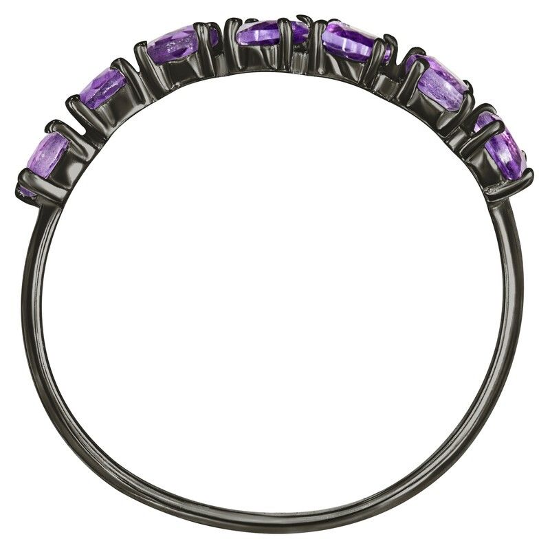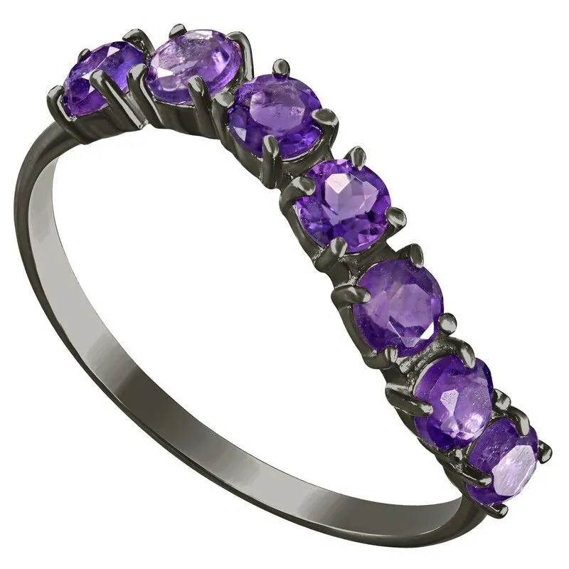 Серебряное кольцо с натуральным аметистом (темный) - коллекция Волна / покрытие Черный Родий.Средний вес украшения с камнями 1.24 гр.Месторождение: Аметист (Приполярный Урал, Россия)Ювелирные вставки:Аметист (Натуральный) круг 3 мм., средний вес: 0.79 карат.Все изделия собственного производства и имеют гарантию 12 месяцев. Арт. 8724BR. Аметист — прозрачный или полупрозрачный камень фиолетовых оттенков, подвид кварца. Он гармонизирует разум, снимает стресс, улучшает кровообращение, способствует умственному развитию и личностному росту. Считается, что он также оберегает от головной боли и бессонницы, служит противоядием, помогает избавиться от алкоголизма и наделяет владельца проницательностью, раскрывая «третий глаз» (за который отвечает чакра аджна). В медитации помогает расслабиться и успокоиться. Положенный под подушку, аметист приносит хорошие сны.