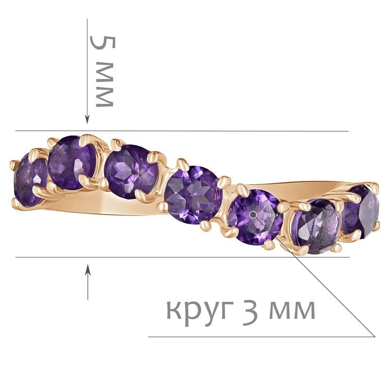 Серебряное кольцо с натуральным аметистом (темный) - коллекция Волна / покрытие Розовое Золото.Средний вес украшения с камнями 1.25 гр.Месторождение: Аметист (Приполярный Урал, Россия)Ювелирные вставки:Аметист (Натуральный) круг 3 мм., средний вес: 0.84 карат.Все изделия собственного производства и имеют гарантию 12 месяцев. Арт. 8724PG. Аметист — прозрачный или полупрозрачный камень фиолетовых оттенков, подвид кварца. Он гармонизирует разум, снимает стресс, улучшает кровообращение, способствует умственному развитию и личностному росту. Считается, что он также оберегает от головной боли и бессонницы, служит противоядием, помогает избавиться от алкоголизма и наделяет владельца проницательностью, раскрывая «третий глаз» (за который отвечает чакра аджна). В медитации помогает расслабиться и успокоиться. Положенный под подушку, аметист приносит хорошие сны.