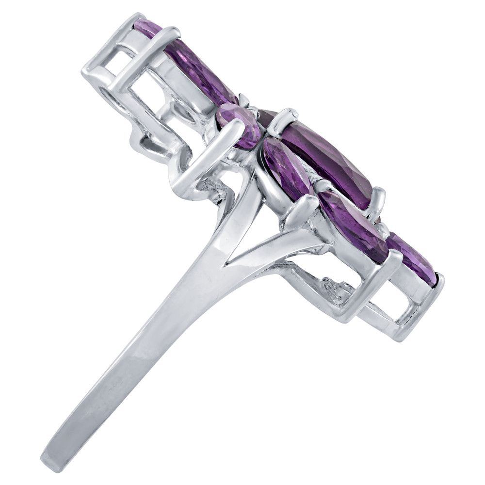 Серебряное кольцо с натуральным аметистом (темным) - коллекция Элегия / покрытие Чистое Серебро. Средний вес украшения с камнями 3.94 гр. Месторождение: Аметист (Приполярный Урал, Россия) Ювелирные вставки: Аметист (Натуральный) груша 7*10 мм., средний вес: 1.7 карат. Аметист (Натуральный) маркиз 3*6 мм., средний вес: 0.26 карат. Все изделия собственного производства и имеют гарантию 12 месяцев. Арт. 8779AG. Аметист — прозрачный или полупрозрачный камень фиолетовых оттенков, подвид кварца. Он гармонизирует разум, снимает стресс, улучшает кровообращение, способствует умственному развитию и личностному росту. Считается, что он также оберегает от головной боли и бессонницы, служит противоядием, помогает избавиться от алкоголизма и наделяет владельца проницательностью, раскрывая «третий глаз» (за который отвечает чакра аджна). В медитации помогает расслабиться и успокоиться. Положенный под подушку, аметист приносит хорошие сны.