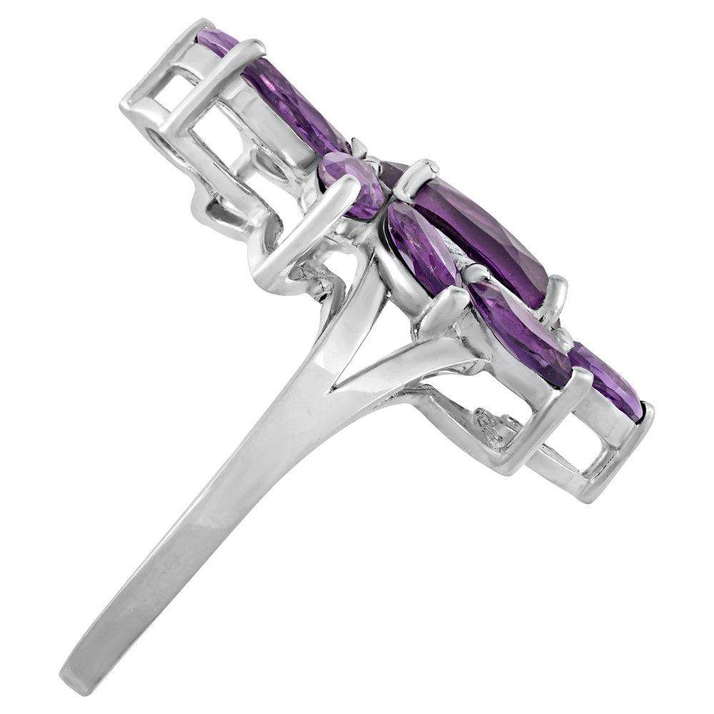 Серебряное кольцо с натуральным аметистом (темным) - коллекция Элегия / Без покрытия. Средний вес украшения с камнями 3.95 гр. Месторождение: Аметист (Приполярный Урал, Россия) Ювелирные вставки: Аметист (Натуральный) груша 7*10 мм., средний вес: 1.7 карат. Аметист (Натуральный) маркиз 3*6 мм., средний вес: 0.26 карат. Все изделия собственного производства и имеют гарантию 12 месяцев. Арт. 8779NP. Аметист — прозрачный или полупрозрачный камень фиолетовых оттенков, подвид кварца. Он гармонизирует разум, снимает стресс, улучшает кровообращение, способствует умственному развитию и личностному росту. Считается, что он также оберегает от головной боли и бессонницы, служит противоядием, помогает избавиться от алкоголизма и наделяет владельца проницательностью, раскрывая «третий глаз» (за который отвечает чакра аджна). В медитации помогает расслабиться и успокоиться. Положенный под подушку, аметист приносит хорошие сны.