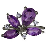 Серебряное кольцо с натуральным аметистом (темным) - коллекция Аврора / Черный Родий. Средний вес украшения с камнями 3.09 гр. Месторождение: Аметист (Приполярный Урал, Россия). Ювелирные вставки: Аметист (Натуральный) груша 6*9 мм., средний вес: 1.23 карат. Аметист (Натуральный) маркиз 4*8 мм., средний вес: 0.54 карат. Белый Нанокристалл круг 2 мм. Все изделия собственного производства и имеют гарантию 12 месяцев, к каждому изделию прилагается паспорт. Арт. 8908BR