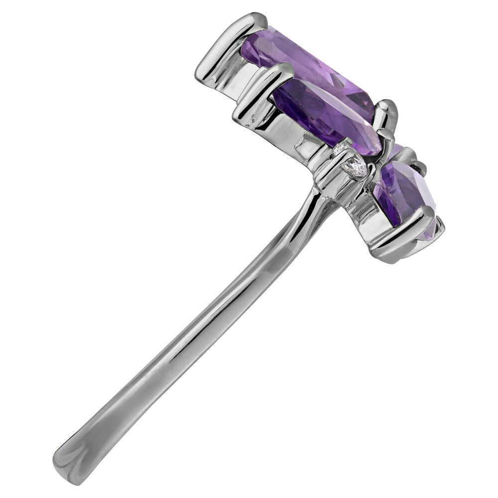 Серебряное кольцо с натуральным аметистом (темным) - коллекция Аврора / Палладий. Средний вес украшения с камнями 3.09 гр. Месторождение: Аметист (Приполярный Урал, Россия). Ювелирные вставки: Аметист (Натуральный) груша 6*9 мм., средний вес: 1.23 карат. Аметист (Натуральный) маркиз 4*8 мм., средний вес: 0.54 карат. Белый Нанокристалл круг 2 мм. Все изделия собственного производства и имеют гарантию 12 месяцев, к каждому изделию прилагается паспорт. Арт. 8908PD