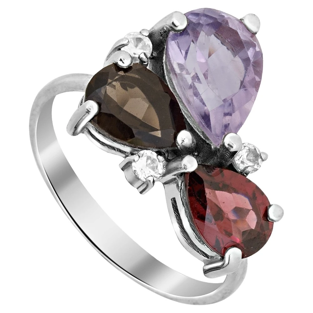 Кольцо серебро 925-пробы, камень натуральный аметист, гранат, раухтопаз - размер 20 Lazurit Online КОД: 6629BR200