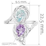 Серебряное кольцо с натуральным аметистом и топазом - коллекция Ривьера. Средний вес изделия с камнями 2.83 гр. Месторождение(я): Аметист (Приполярный Урал, Россия) и Топаз (Ильменские горы, Россия). Аметист (Натуральный) груша 5*7 мм., средний вес: 0.68 карат.