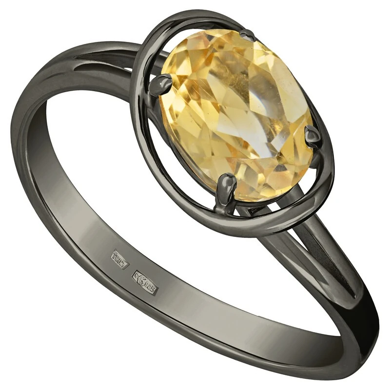 Серебряное кольцо с натуральным цитрином - коллекция Фрейя, покрытие Черный Родий.