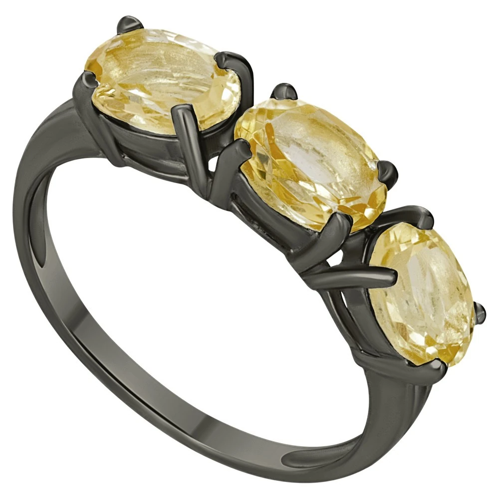Серебряное кольцо с натуральным цитрином - коллекция Муза, покрытие Черный Родий.