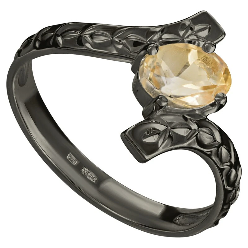 Серебряное кольцо с натуральным цитрином - коллекция Тея, покрытие Черный Родий.
