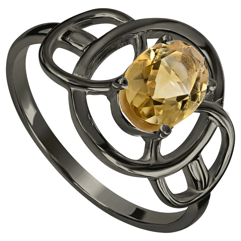 Серебряное кольцо с натуральным цитрином - коллекция Юнона, покрытие Черный Родий.