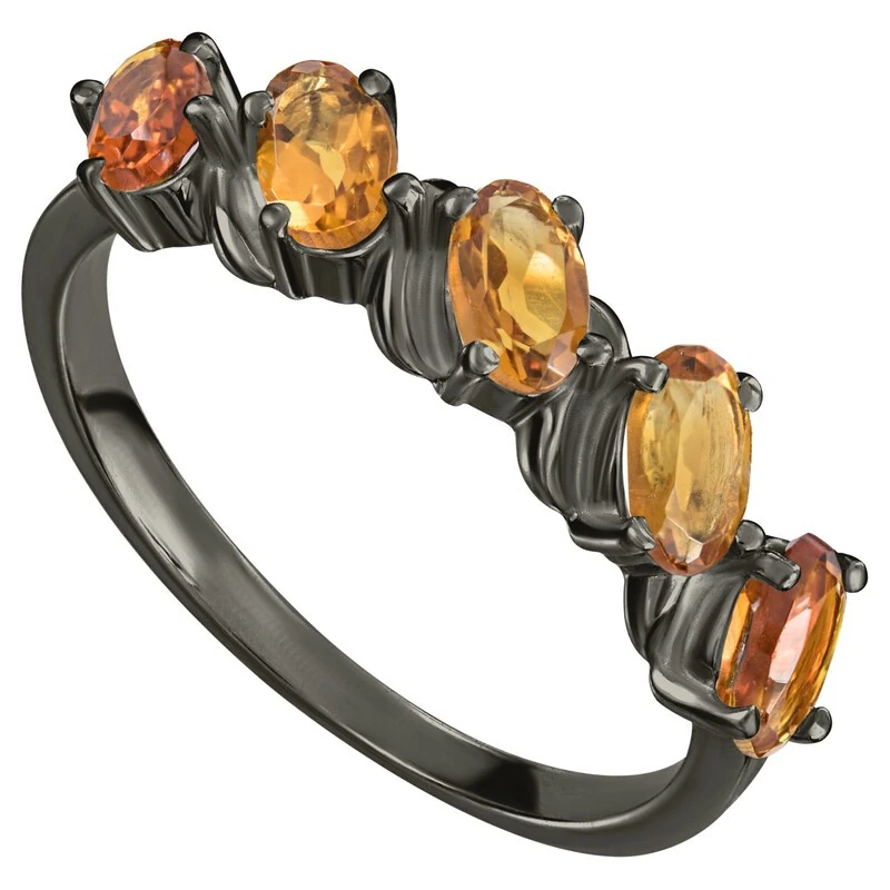 Серебряное кольцо с натуральным цитрином (мадейра) - коллекция Колосок, покрытие Черный Родий.