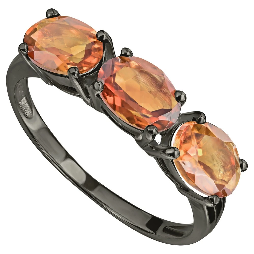 Серебряное кольцо с натуральным цитрином (мадейра) - коллекция Муза, покрытие Черный Родий.
