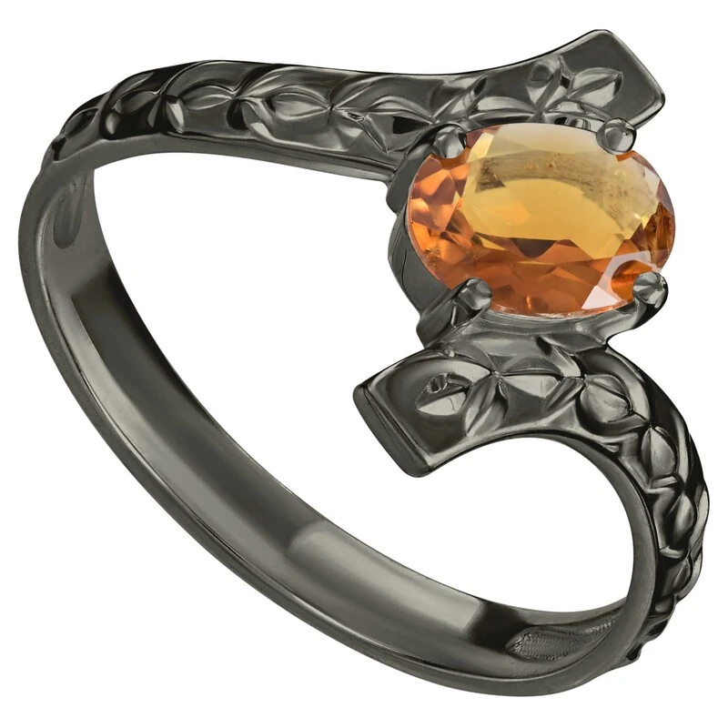 Серебряное кольцо с натуральным цитрином (мадейра) - коллекция Тея, покрытие Черный Родий.