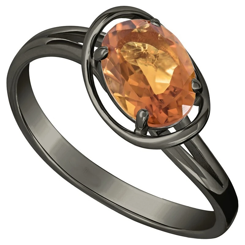 Серебряное кольцо с натуральным цитрином (мадейра) - коллекция Фрейя, покрытие Черный Родий.