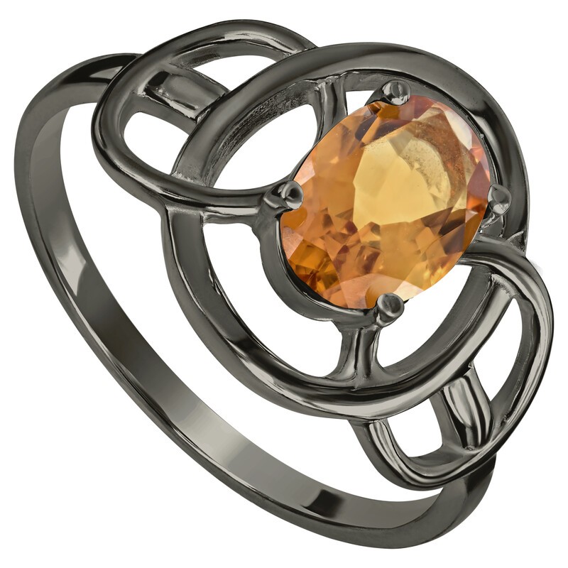 Серебряное кольцо с натуральным цитрином (мадейра) - коллекция Юнона, покрытие Черный Родий.