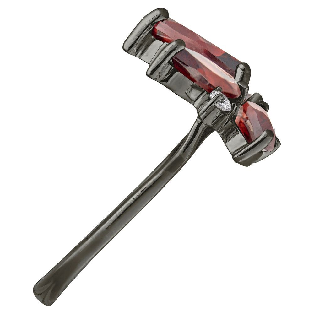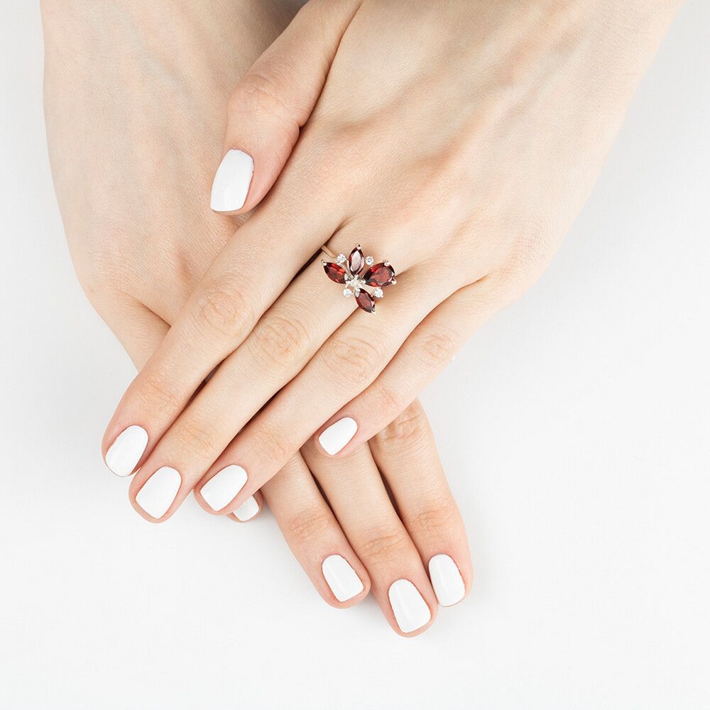 Серебряное кольцо с натуральным гранатом - коллекция Аврора / Черный Родий. Средний вес украшения с камнями 3.48 гр. Месторождение: Гранат (Кольский п-ов, Россия). Ювелирные вставки: Гранат (Натуральный) груша 6*9 мм., средний вес: 1.45 карат. Гранат (Натуральный) маркиз 4*8 мм., средний вес: 0.61 карат. Белый Нанокристалл круг 2 мм. Все изделия собственного производства и имеют гарантию 12 месяцев, к каждому изделию прилагается паспорт. Арт. 6622BR